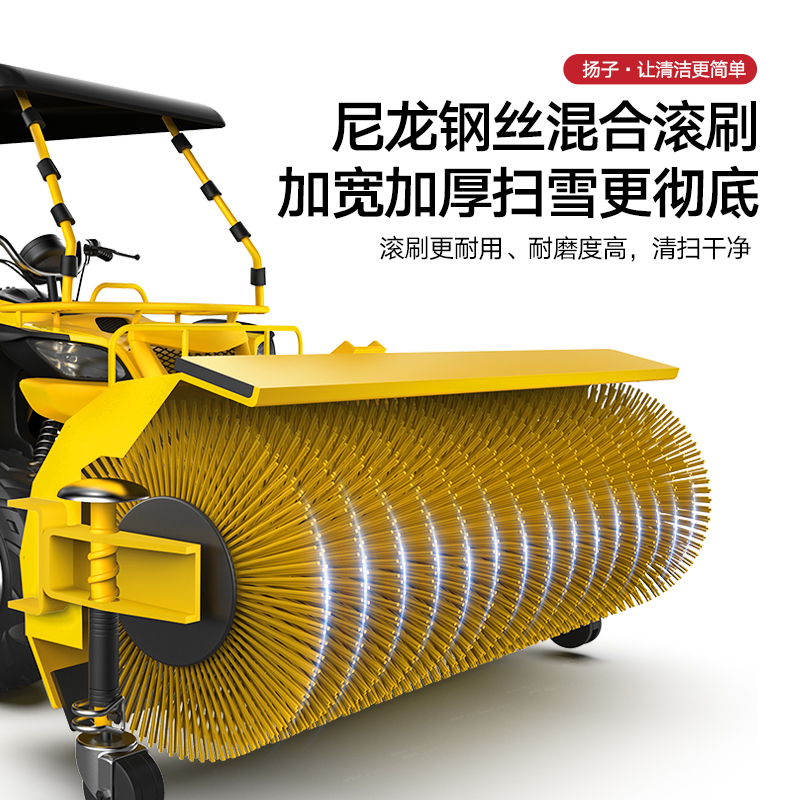 揚(yáng)子YZ-SXJ003駕駛式掃雪機(jī)加寬加厚掃雪更徹底,耐磨尼龍鋼絲混合滾刷持久更耐用,可調(diào)節(jié)檔位操作更簡(jiǎn)單
