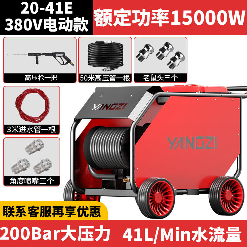 揚子YZ-20-41E電動管道疏通機(jī)疏通+清洗,一機(jī)在手清潔無憂;380V工業(yè)電使用作業(yè)有保障,2種接頭可選配針對不同沖洗種類,不同環(huán)境不同選擇。