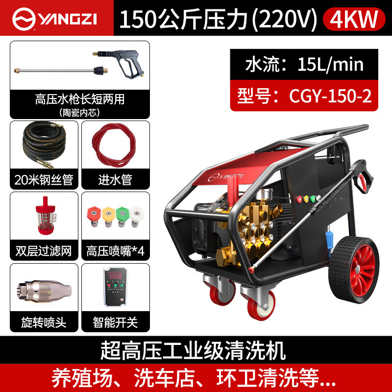 揚(yáng)子高壓清洗機(jī)CGY 噴砂除漆除銹混凝土拉毛清洗 化工廠區(qū)工程機(jī)械翻新,沖洗+除銹二合一,一機(jī)多功能,多場(chǎng)景適用,滿足您的清洗需求,進(jìn)口高性能AR泵,高精準(zhǔn)工業(yè)級(jí)陶瓷柱塞曲軸泵,耐高壓持續(xù)穩(wěn)定為機(jī)器提供高壓力與大流量。