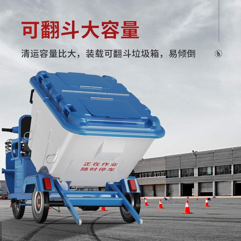 揚子環(huán)衛(wèi)搬運車安全環(huán)保,可翻斗大容量垃圾箱裝得更多傾倒更輕松,高亮大燈聚光強(qiáng)低能耗,夜間行駛也安心。