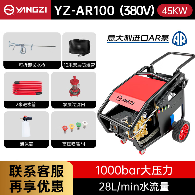揚(yáng)子高壓清洗機(jī)YZ-AR 工業(yè)用除銹除油漆車間清洗機(jī),進(jìn)口AR泵高性能耐高壓,定制高壓管柔韌耐用高硬度不漏水,感應(yīng)系統(tǒng)關(guān)槍停機(jī)。